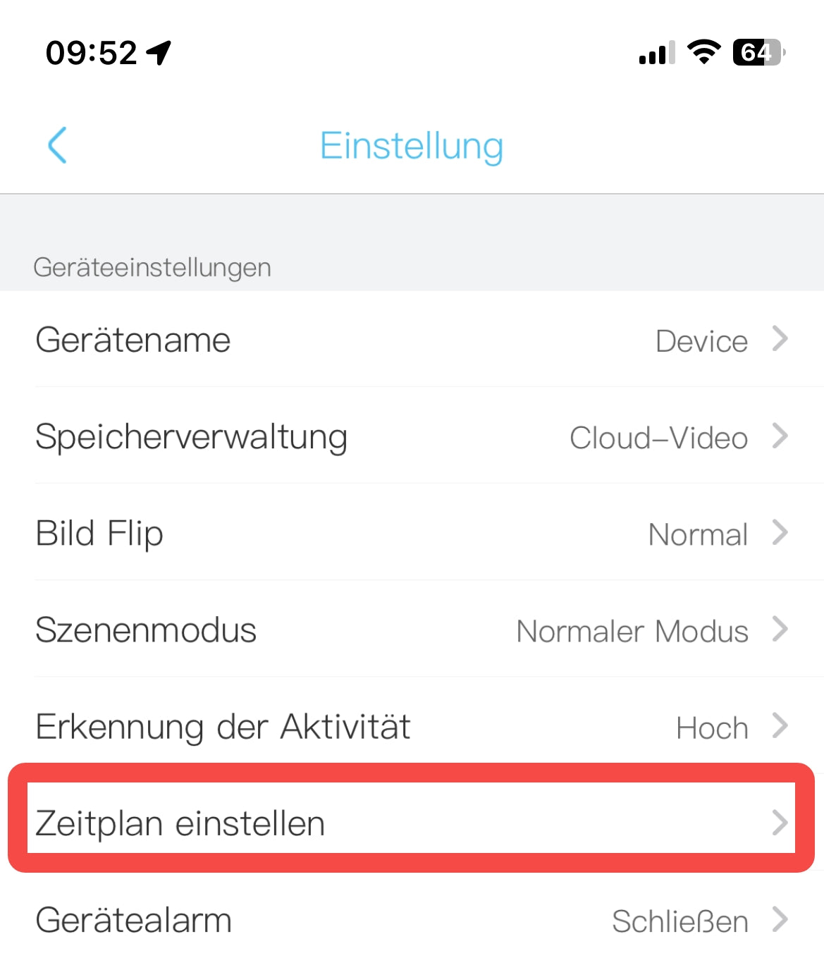 3. Klicken Sie bitte in den Einstellungen auf „Zeitplan einstellen“. Oder „Erkennungszeitplan“ für alte APP-Versionen.