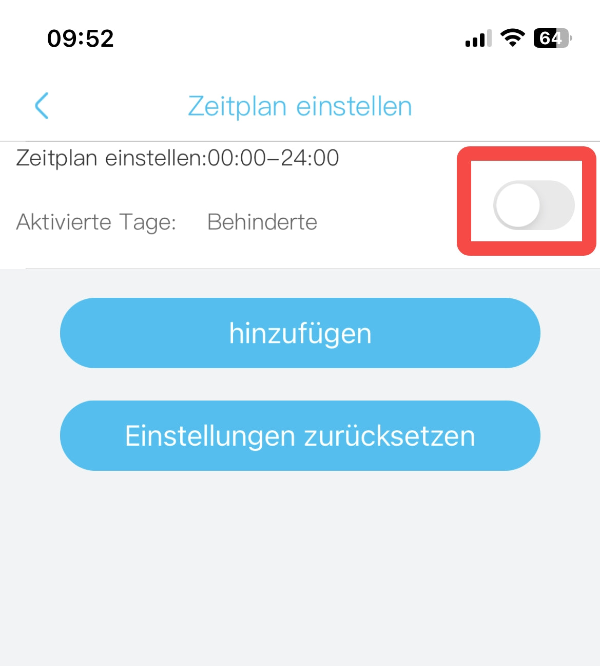 4. Der Standardzeitplan ermöglicht es der Kamera, jederzeit Bewegungen zu erkennen. Schalten Sie den Standardzeitplan aus.
