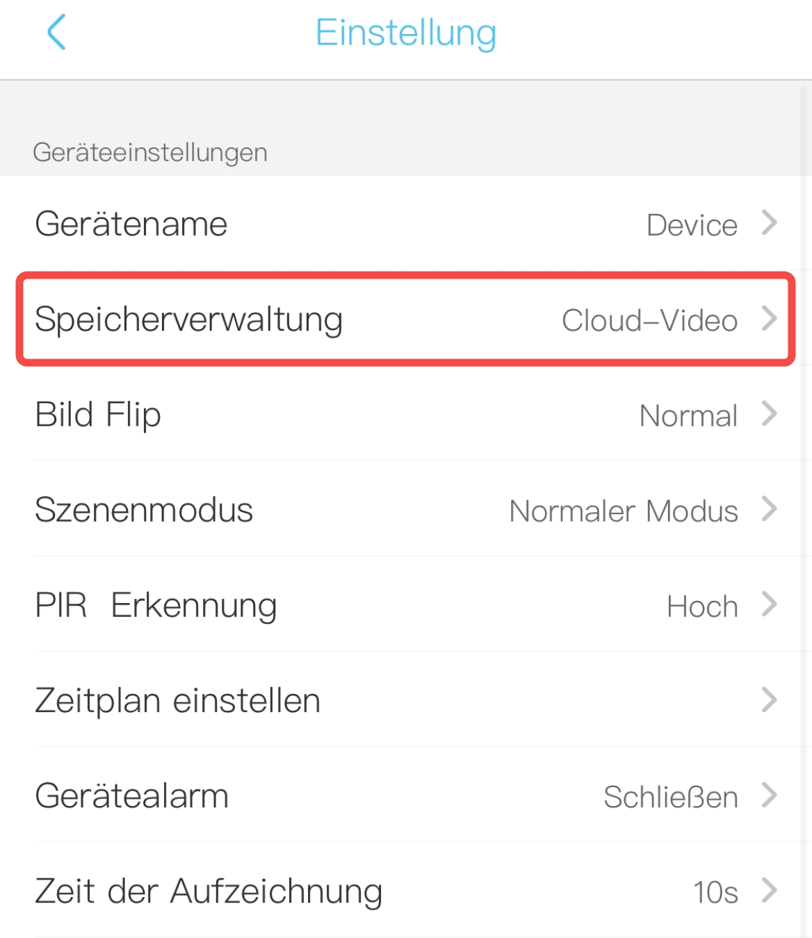4. Schalten Sie "Cloud-Video" aus. Dann werden die Bewegungserkennungsvideos nicht mehr in die Cloud hochgeladen.