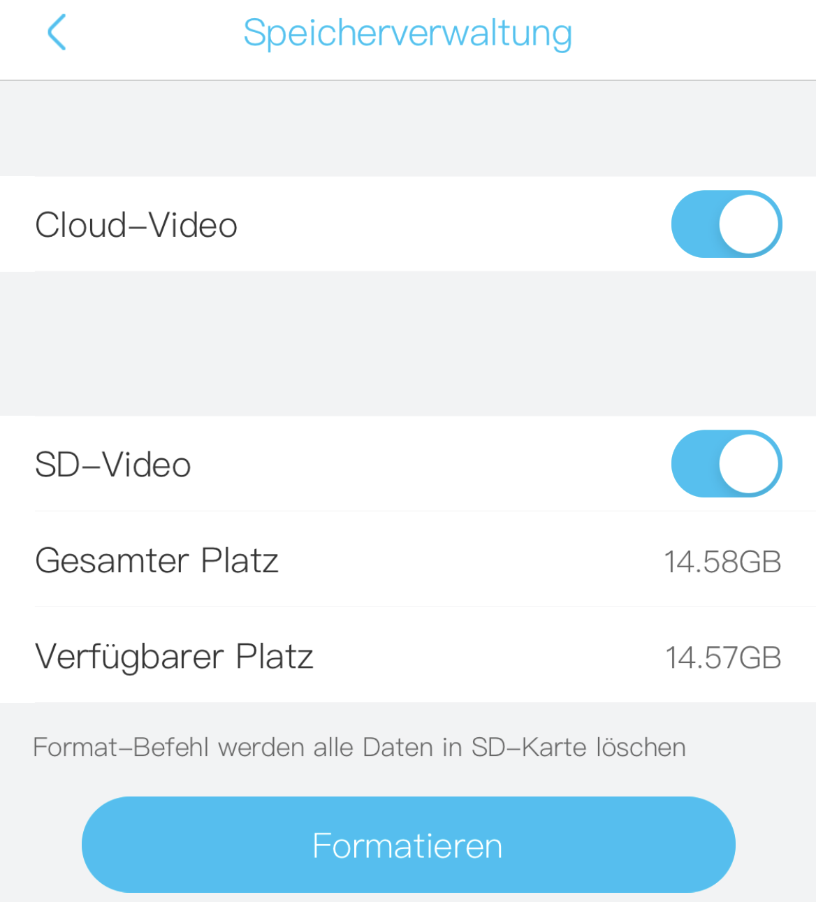 Bitte stellen Sie sicher, dass Sie eine SD-Karte zum Speichern der Videos anstelle der Cloud verwenden. Andernfalls erhalten Sie nur Benachrichtigungen und Live-Ansichten von der Kamera. Aber keine aufgezeichneten Videos.
