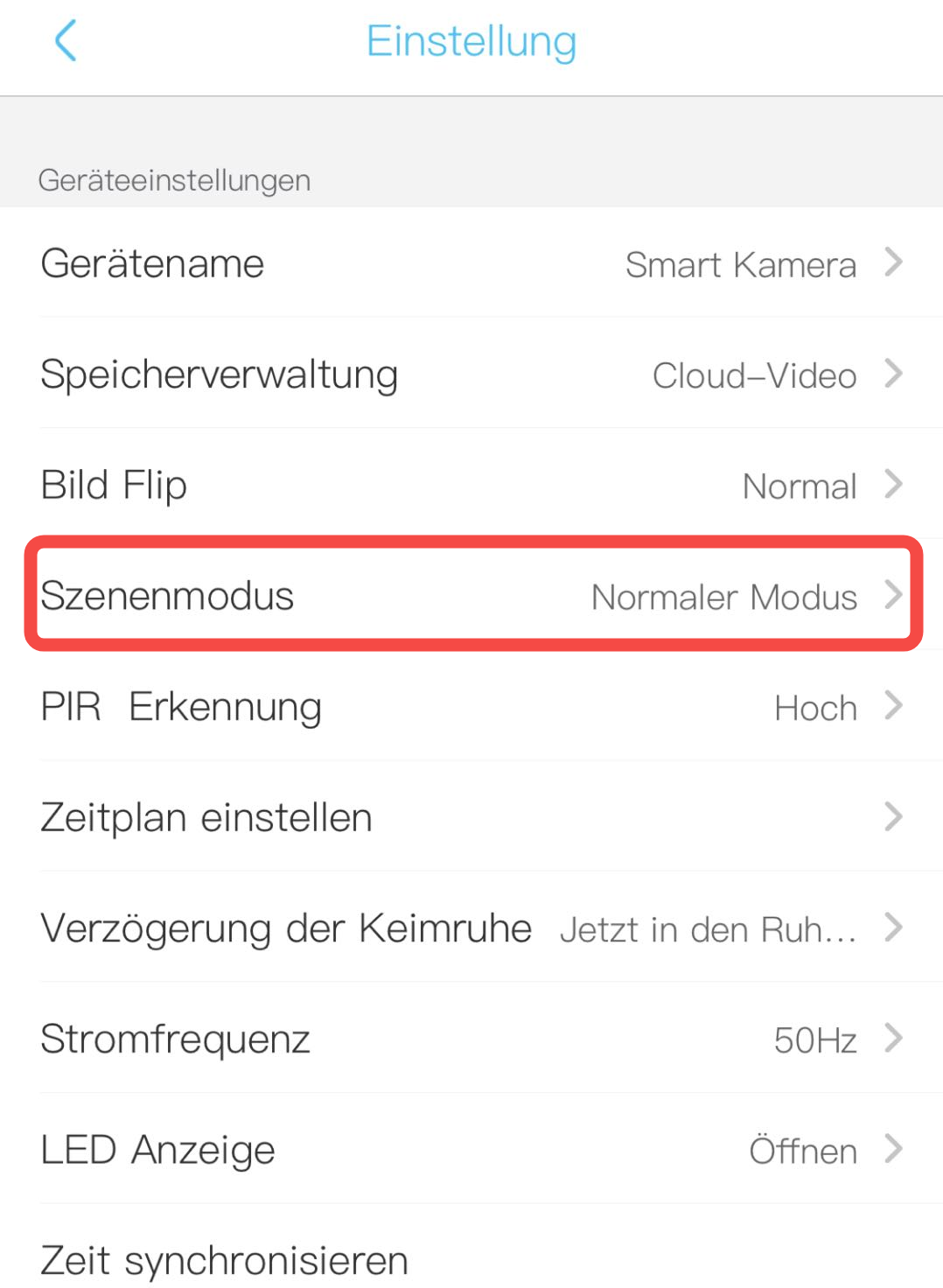3. Klicken Sie auf , um die Schnittstelle "Szenenmodus" aufzurufen. Und wählen Sie "Nachtsichtmodus". Die Option "Normal Modus" ist die Standardeinstellung für die automatische Nachtsicht.