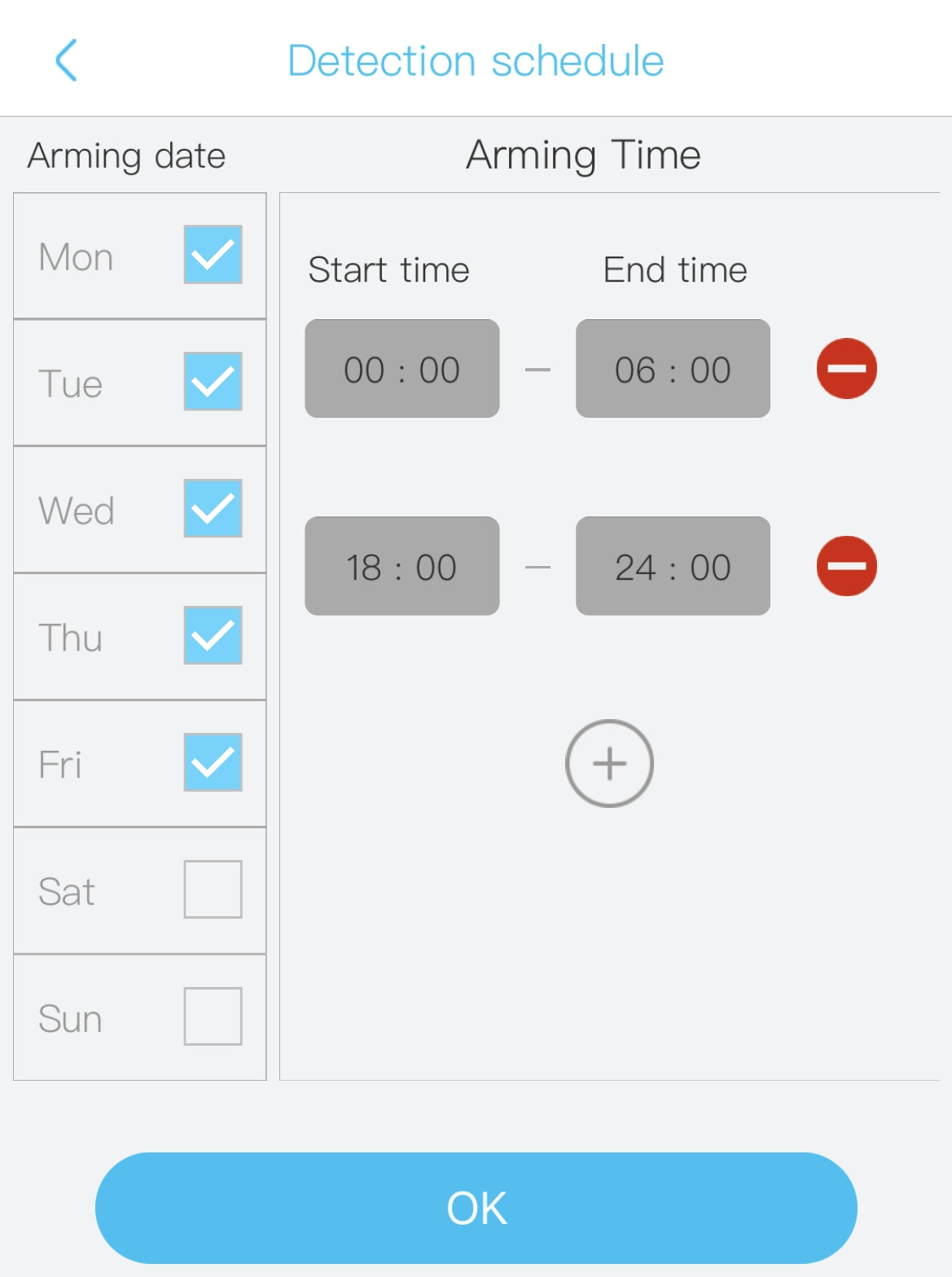 3. Please click the "Detection schedule" in the settings. Or "Arming setting" for old APP versions.